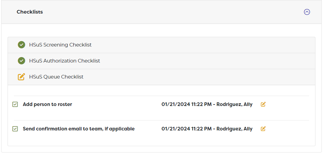stages are able to be viewed by clicking the link of the respective checklist to expand